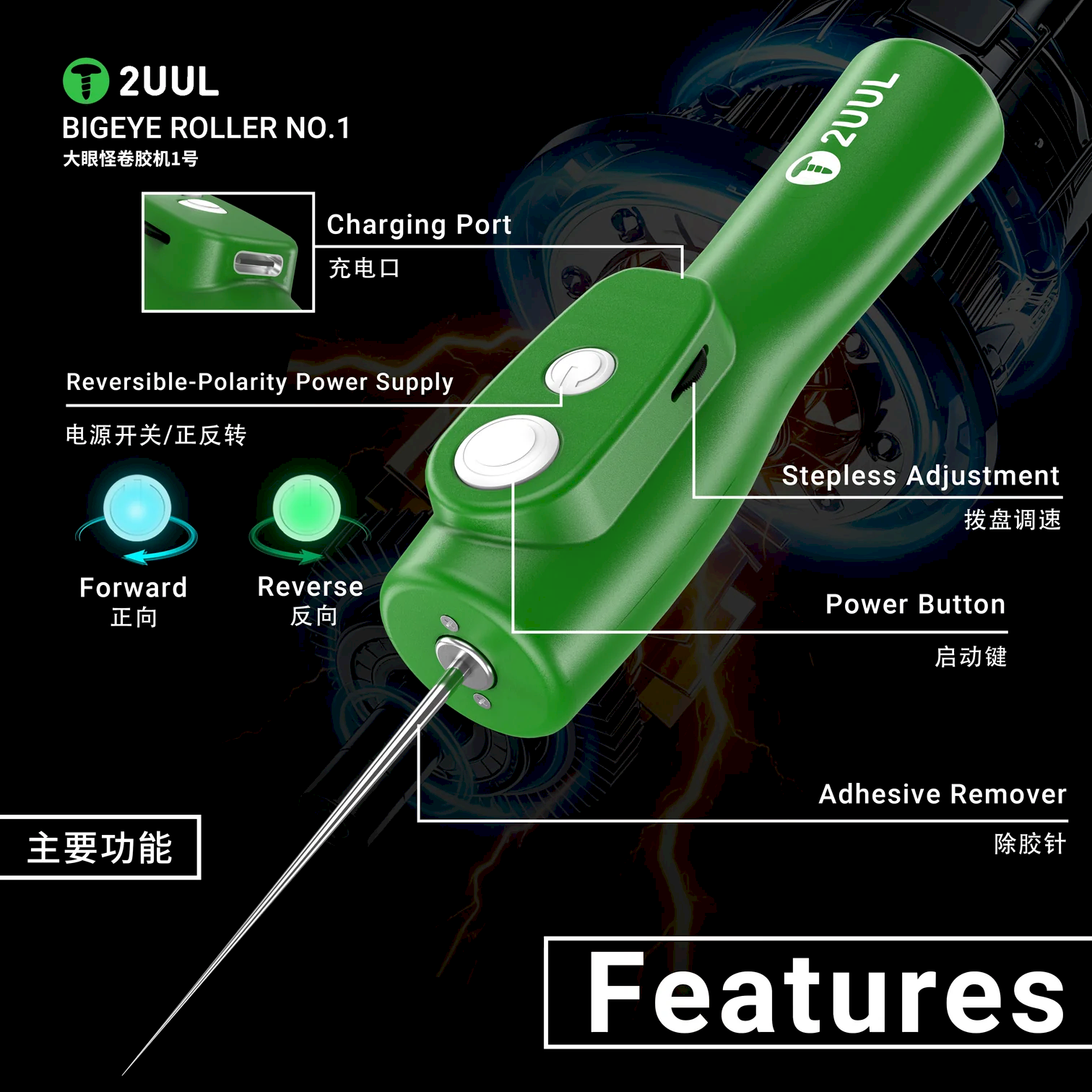Электрический очиститель клея 2UUL DA55 BigEye Roller No.1 для удаления OCA клея с дисплея, аккумуляторный ролик для ремонта телефонов
